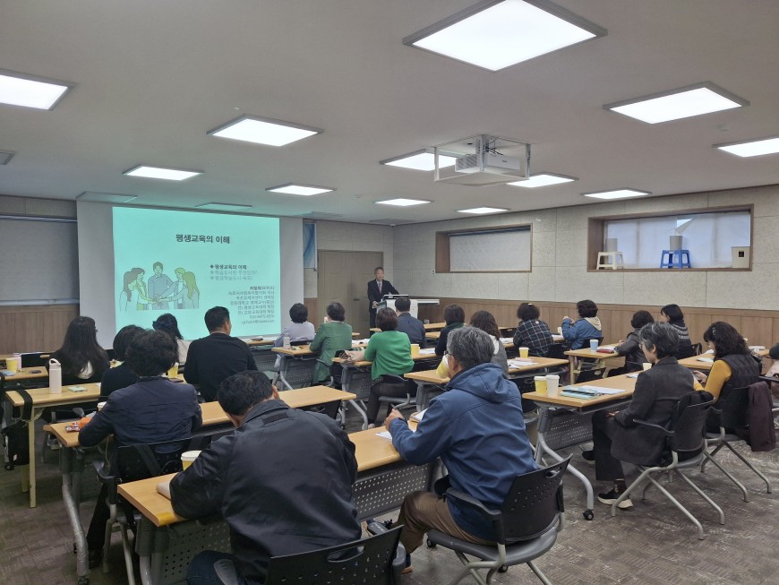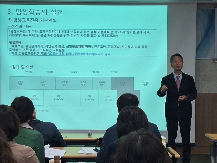 명예교수, 전 경동대학교 평생교육대학 학장)가 '평생학습도시의 이해와 전략'을 주제로 강의를 진행했다.