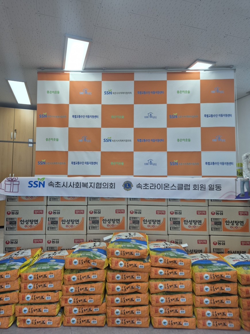 4. 내 용 : 속초라이온스클럽(회장 이헌철)은 독거노인 물품 꾸러미 지원사업을 위한 후원품 쌀10kg 39포, 라면 39박스